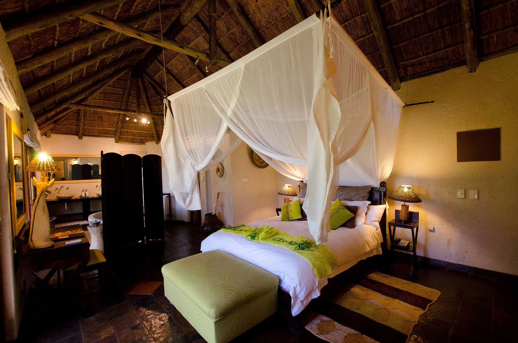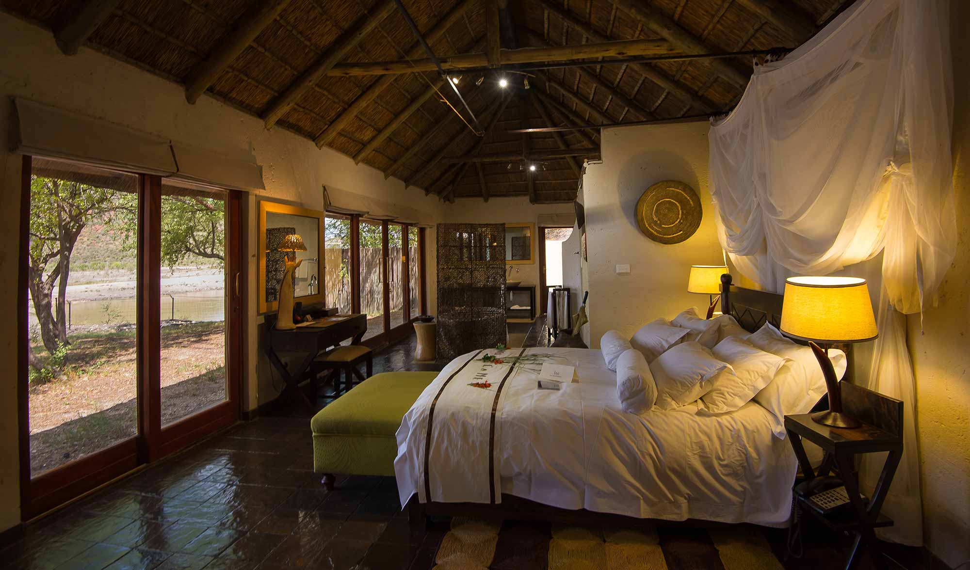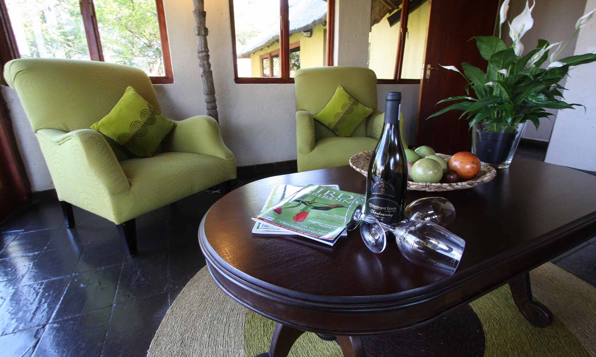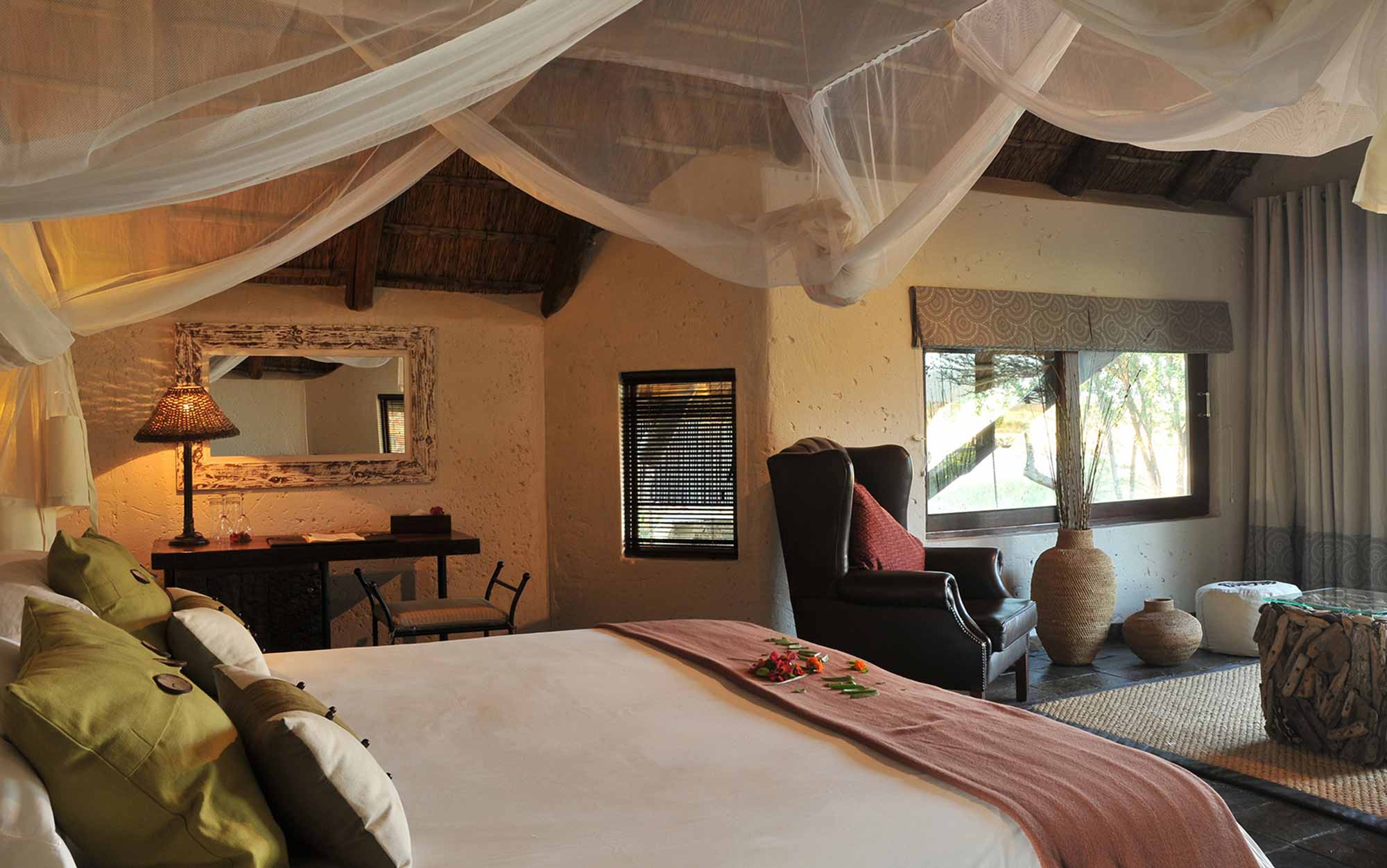 The Family Suite consists of 2 adjacent Deluxe chalets joined by a semi-interleading lounge area. It is thus suitable for larger families of 2 adults and max 4 children below the age of 12 years, 1 bedroom is equipped with a double bed and the other with twin beds, sleeper couches can be put into the rooms to accommodate the additional 2 children. 1 Family suite only