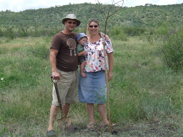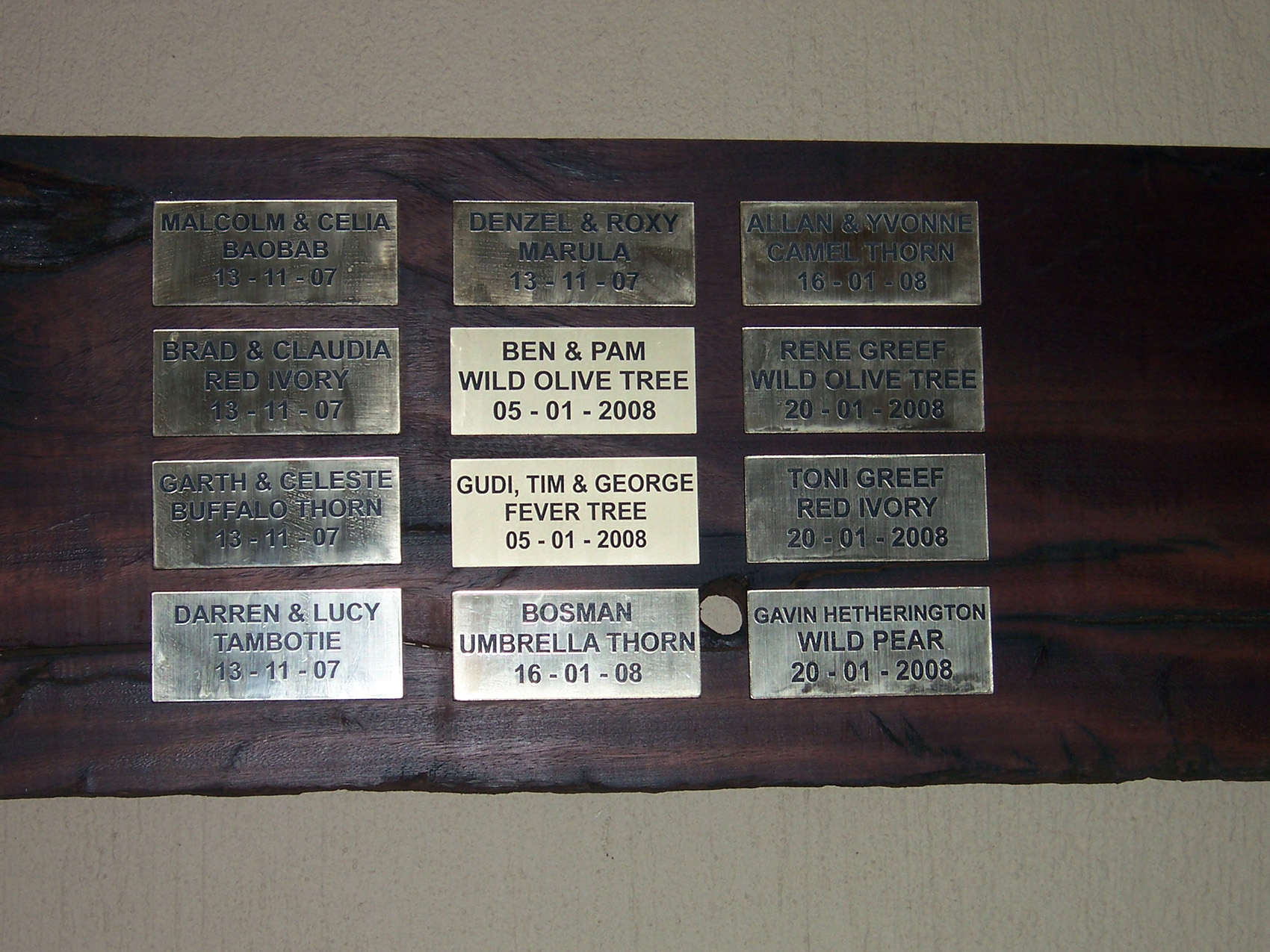 There is a selection of indigenous trees to choose from. At the moment we have a variety of tree species to choose from, but as the fund grows we will be able to increase the amount of species we are able to purchase. Basically how it works is that the guests can choose what tree they wish to plant. The guests and their guide will choose a suitable area to plant it and dig the hole. A photo is taken to document the guest involvement in planting the tree and placed in a photo album, which has its home on a stand in the main lodge. There is also a plaque that states the name/s of the people that planted the tree, the tree species and the date it was planted, which is added to a board above the photo album. The fund is open to other lodges in Madikwe and anyone else who would want to plant a tree in the reserve.